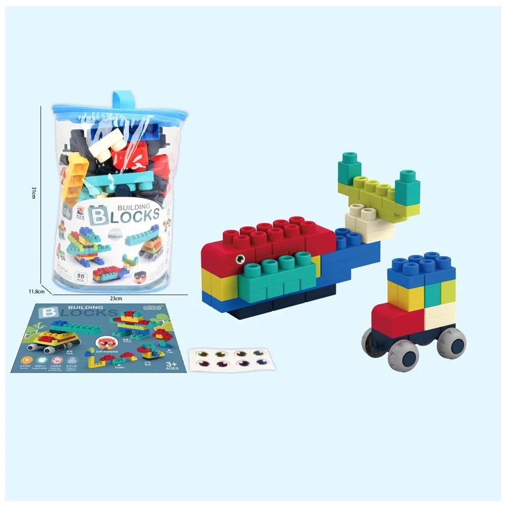 80-Piece Soft Building Blocks - Creative Construction Set in Blue