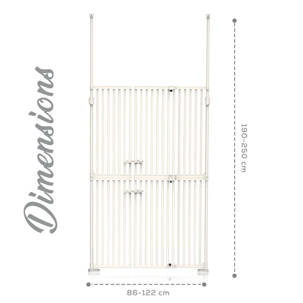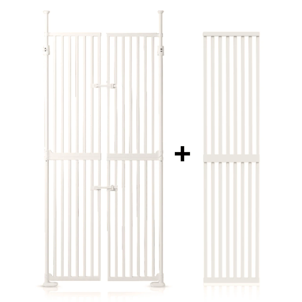 extra wide baby gate, tall safety gate with extension, dual door metal gate, white baby gate, baby gate with extension, baby safe tall gate, home safety barrier, wide opening child gate, secure stairway gate, expandable baby gate system