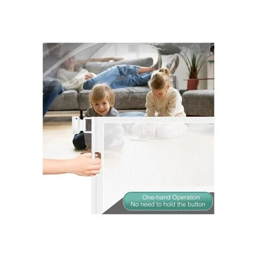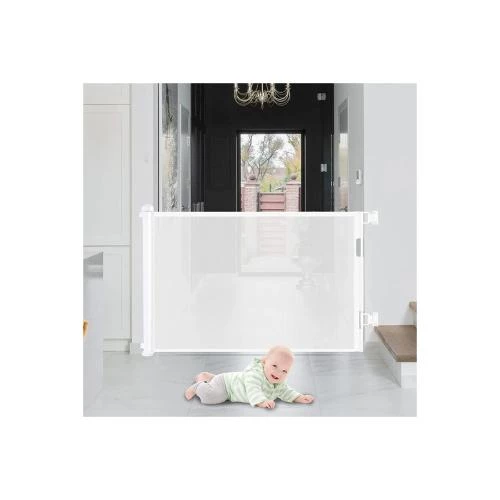 baby retractable gate white, retractable mesh gate, child safety gate retractable, pet safety gate, extra wide baby gate, outdoor retractable gate, sambox baby gate, uv resistant mesh gate, one handed operation gate, en1930 certified baby gate