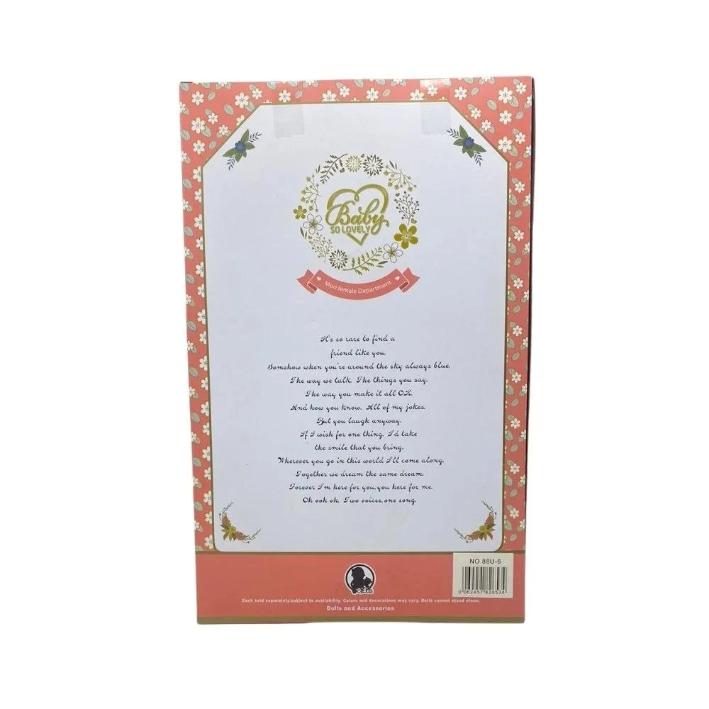 Meet the Baby So Lovely 12-Inch Upright Silicone Doll with Music, a charming and lifelike companion designed to delight girls with its unique standing design and built-in musical features. Crafted from soft, flexible silicone, this doll boasts realistic facial details and detailed clothing, making it perfect for cuddling and imaginative play. The upright design allows it to stand on shelves or desks, doubling as a decorative piece when not in use. With soothing melodies and cheerful tunes activated at the touch of a button, this doll adds an enchanting atmosphere to playtime. Its compact size makes it easy to carry and ideal for role-playing adventures that spark creativity and social interaction. A perfect gift for birthdays or special occasions that brings joy and comfort to children aged 3 and above.