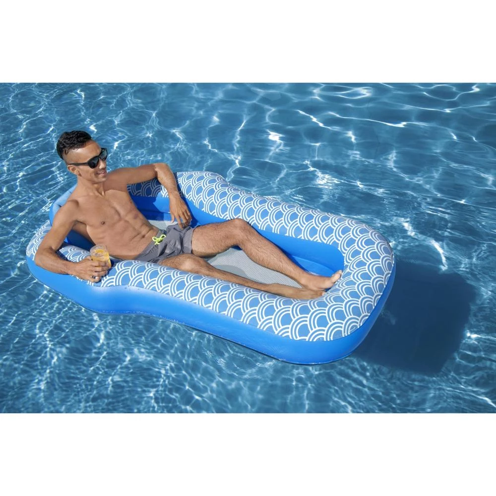Bestway Comfort Plush Lounge 178x117cm – Soft Inflatable Pool Lounger with Mesh Seat & Cup Holder