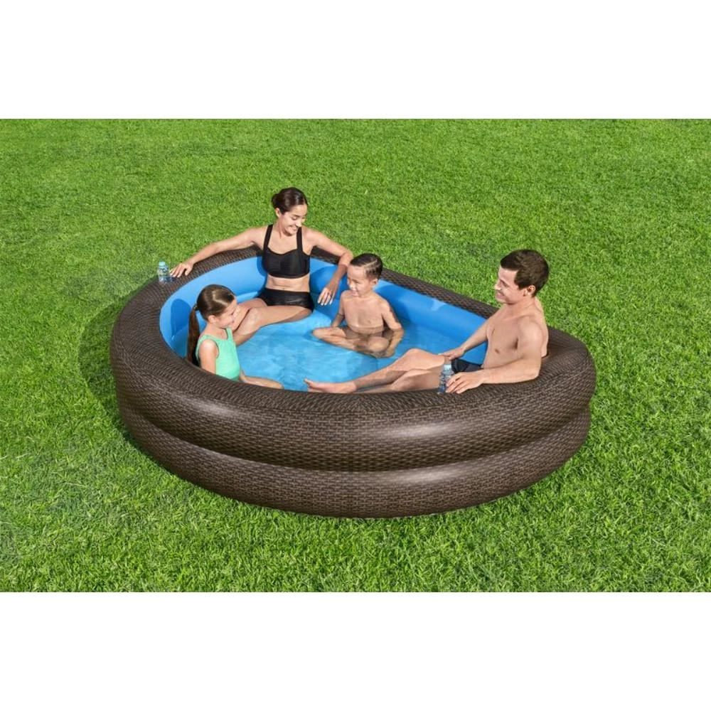 Bestway Wicker Pool, Inflatable Family Pool, Stylish Backyard Pool, 231x178x53cm Pool, Outdoor Relaxation Pool, Bestway Cushioned Pool, Summer Fun Inflatable Pool