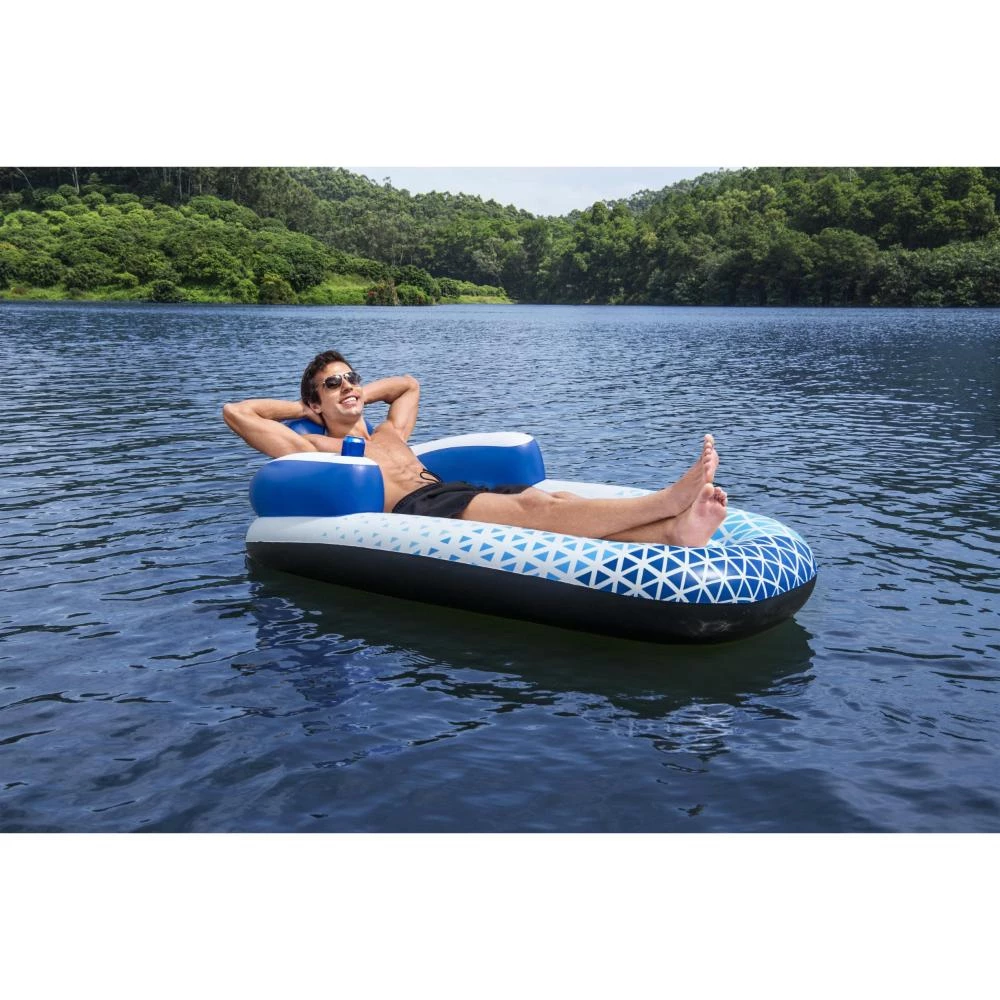 Bestway Hydro-Force Indigo Wave Inflatable Lounge 191x107cm – Durable Float with Armrests, Headrest & Cup Holder