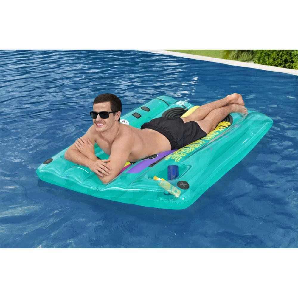 Bestway Retro Beats Lounge, Cassette Tape Pool Float, Inflatable Lounge 174x117cm, Pool Float with Storage, Summer Pool Accessories, Fun Pool Float for Adults, Nostalgic Pool Lounge, Retro Inflatable Lounger, Bluetooth Speaker Storage Float, Pool Day Essentials Lounge