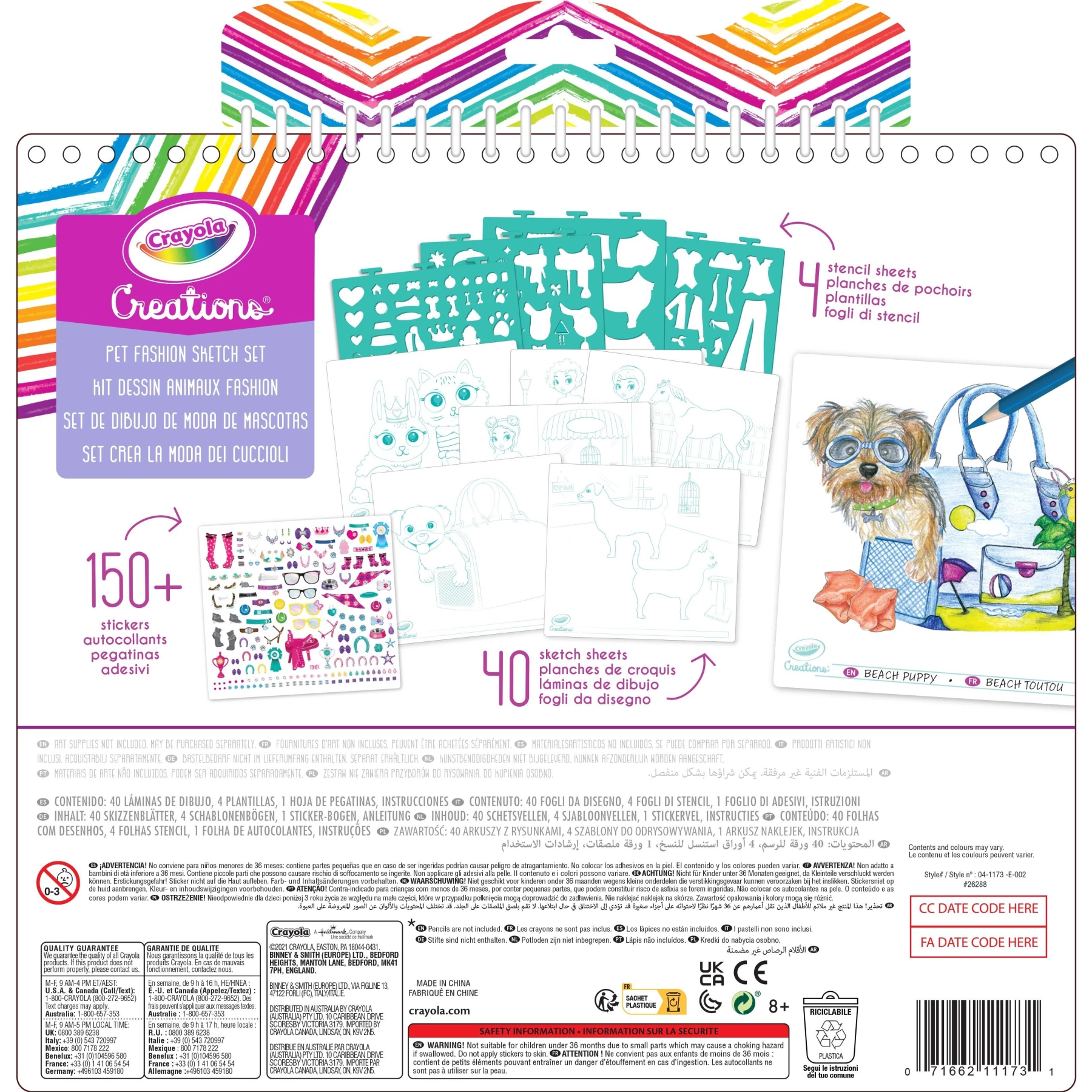 Let your creativity run wild with the Crayola Creations Pet Fashion Studio Coloring Book! Designed for tweens and girls aged 6+, this set allows kids to create their own stylish pet fashion line. The spiral-bound book features 40 design sheets with pre-printed outlines of pets and models, perfect for designing fashionable outfits. With 100+ stencils and 150+ stickers, the possibilities are endless. The included instructional pages guide kids to improve their drawing techniques while having fun designing for their furry friends. The portable design makes it easy to take this set on the go, and a counter display is also included for added convenience.