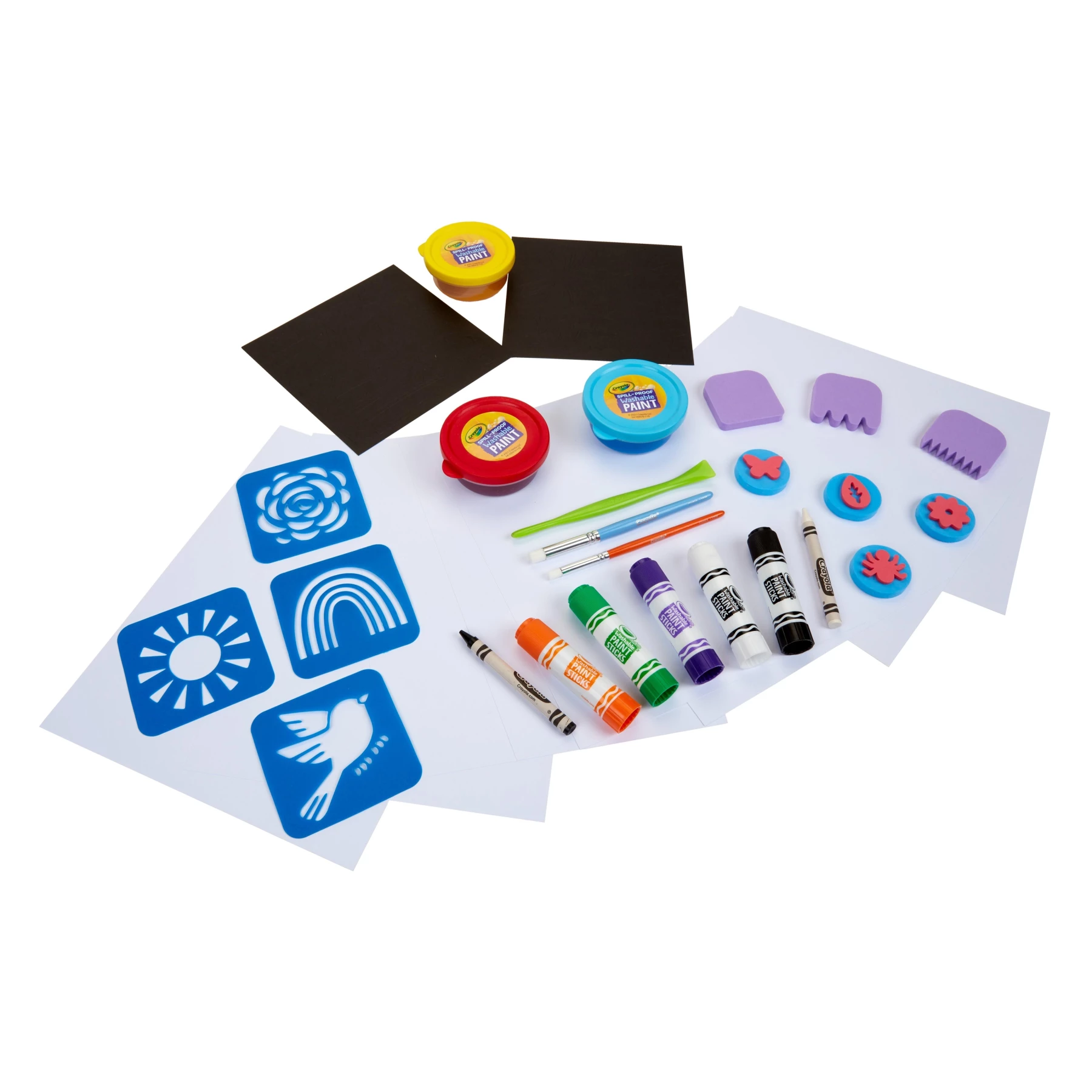 Make painting fun and mess-free with the Crayola Less Mess Paint Set! Designed for young artists, this set features washable, quick-dry, and spill-proof paints for stress-free creativity. With 5 painting activities and 40+ art supplies, kids can explore different techniques without making a mess. The kit includes 5 washable paint sticks, 3 spill-proof paints, 1 black & white crayon, stencil brushes, foam stampers, texture scrapers, stencils, sticker sheets, a scraper tool, and 20 sheets of paper. Safe and non-toxic, it's the perfect gift for budding artists. Ideal for 3-5 Years.