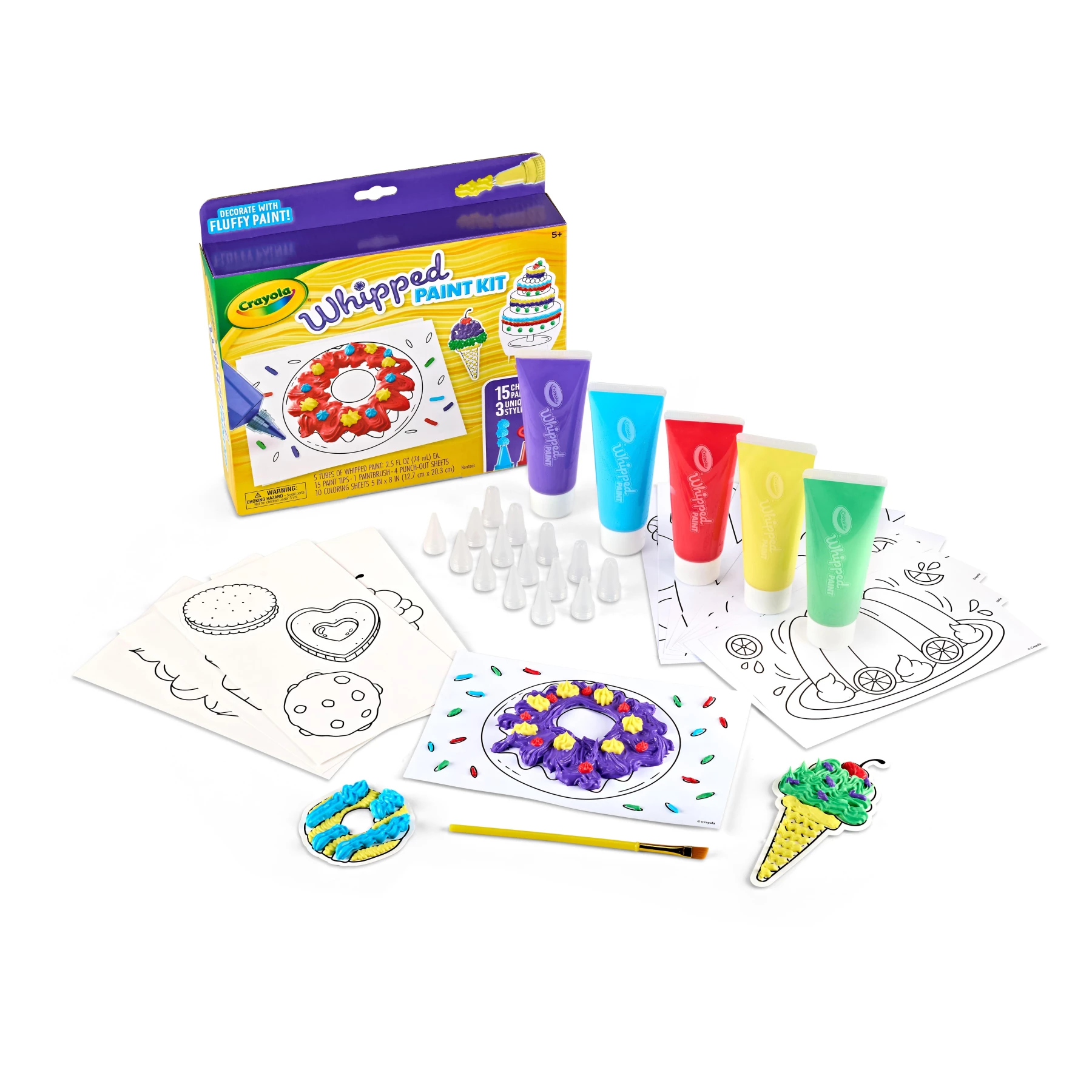 Crayola Whipped Paint Set - 3D Painting Experience with 5 Paint Tubes, 15 Tips, Punchouts & Coloring Pages for Kids