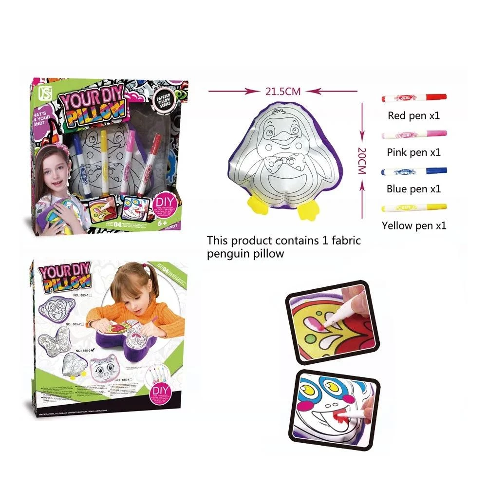 DIY pillow kit, kids fabric pillow, design your own pillow, penguin craft kit, creative toy for kids, coloring pillow for kids, personalized pillow kit, art and craft toy, fabric coloring toy, soft DIY cushion