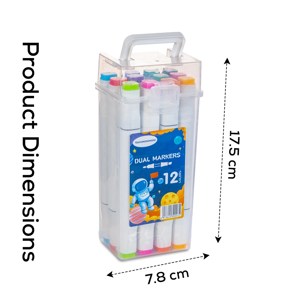 The Eazy Kids 12-Piece Dual Markers Set is a compact yet versatile tool for all your creative needs. Featuring dual tips—a fine tip for detail work and a broad tip for coloring—these markers are perfect for sketching, journaling, and art projects. The vibrant, quick-dry ink provides smooth coverage and resists smudging, ensuring your artwork stays clean and professional.