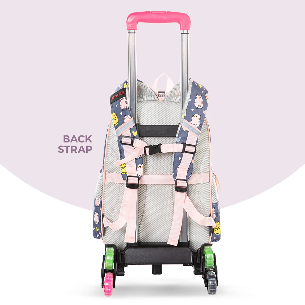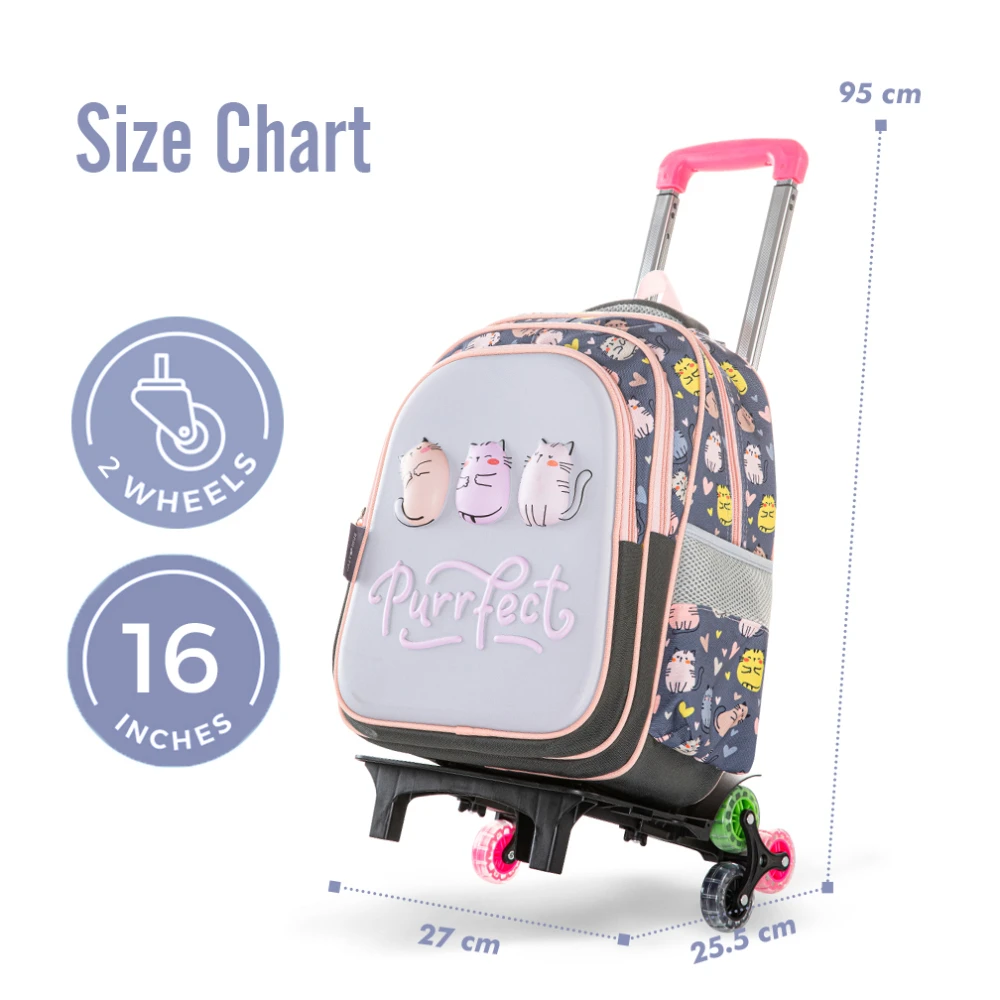 eazy kids school bag, cat theme trolley backpack, grey kids school bag, purrfect grey school set, 16 inch trolley school bag, kids school bag with pencil case, water resistant trolley bag, durable kids backpack, stylish kids school bag, kids backpack with wheels, rolling school bag for girls, fun kids trolley backpack, cute animal school bag, kids travel trolley school bag, comfortable kids school bag, 16 inch kids luggage, kids supplies bag, school accessories bag