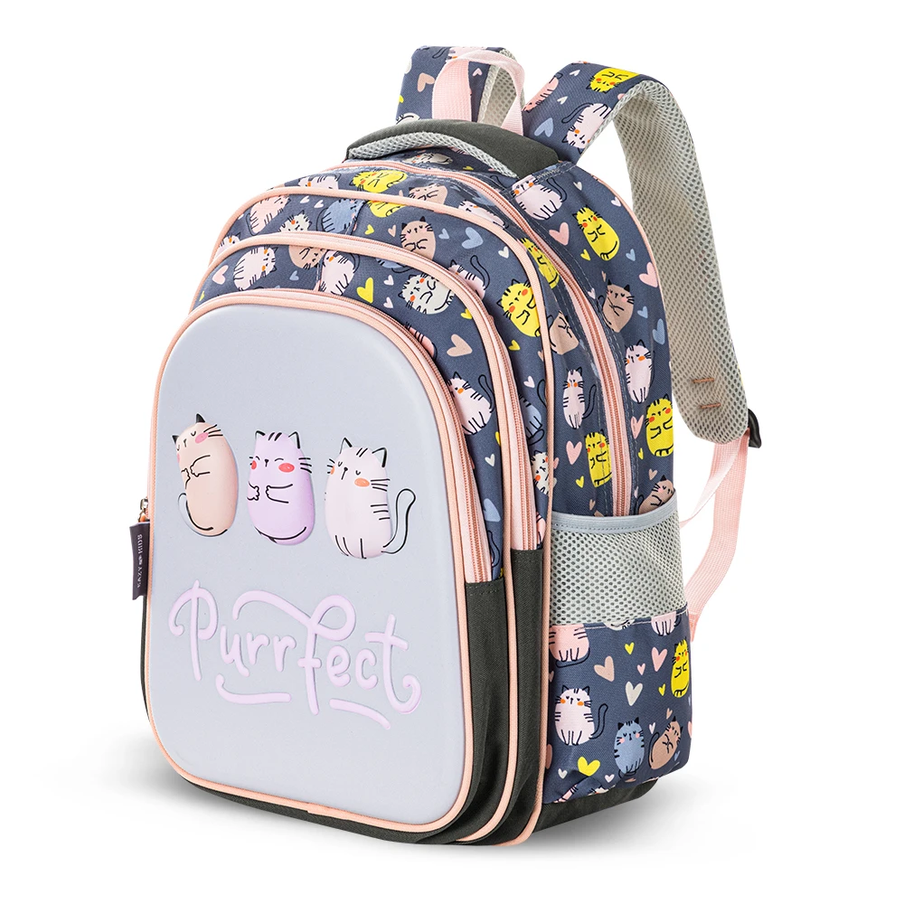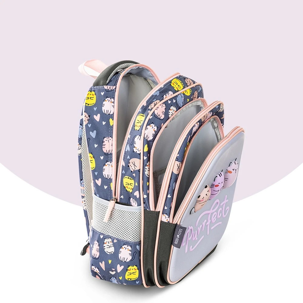 Constructed from water-resistant fabric, this bag is designed for durability and comfort. Multiple compartments help organize books, lunch, and stationery for school or short trips. The Purrfect Grey design is ideal for kids who love stylish and functional school gear.