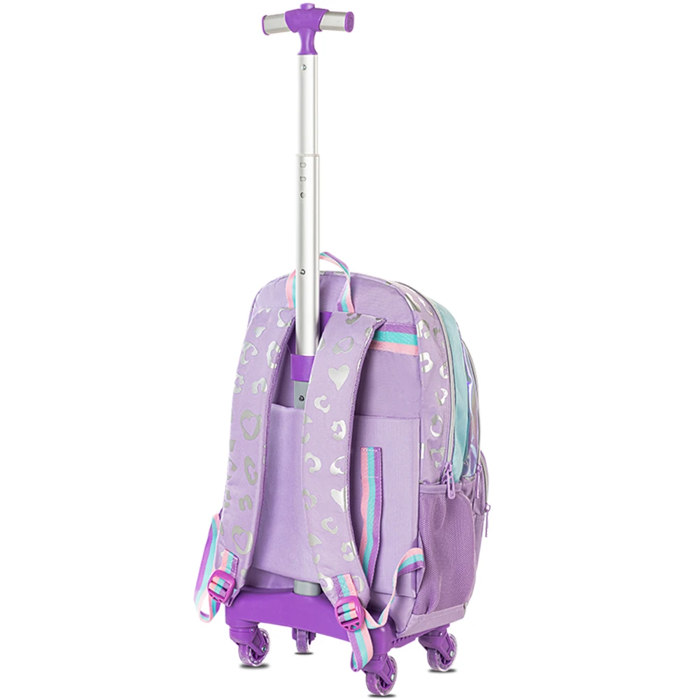 Eazy Kids 17" 3-Piece 4-Wheel Trolley School Bag Set with Lunch Bag & Pencil Pouch - Love Purple