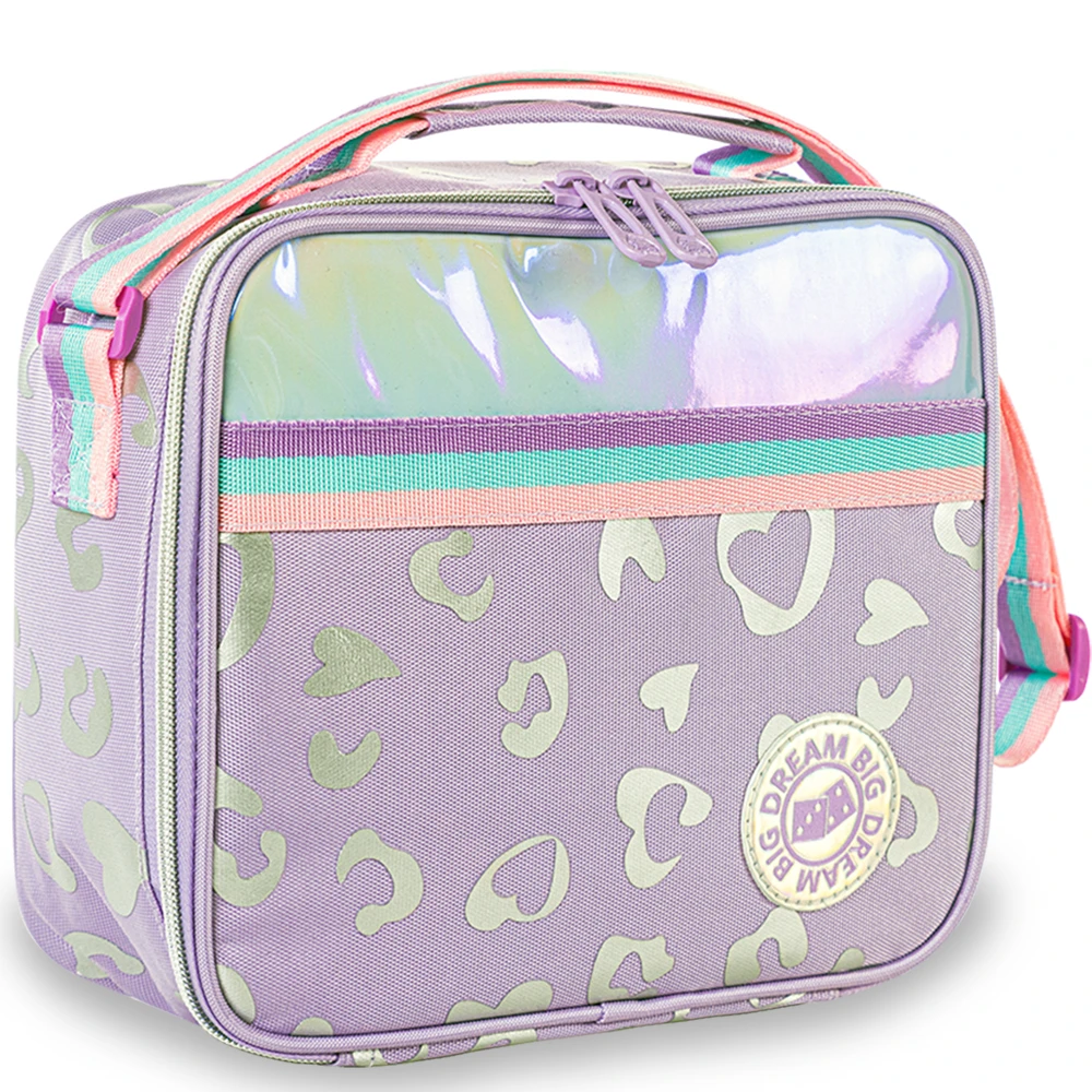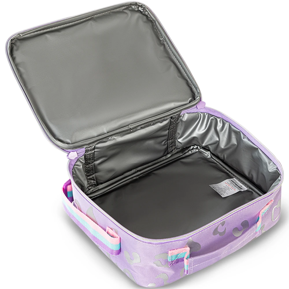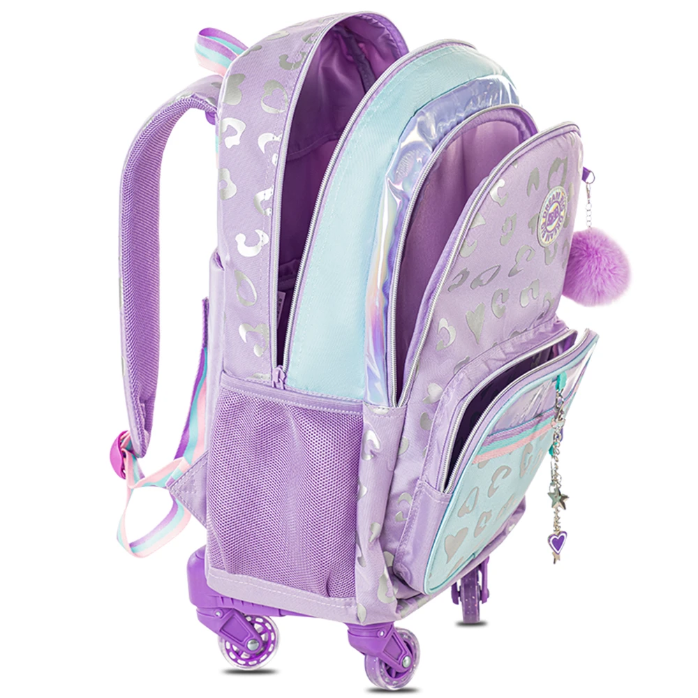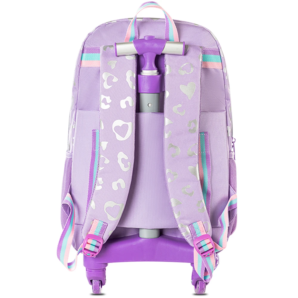 The set includes a matching lunch bag to keep meals fresh and a pencil pouch for stationery storage. The vibrant purple “Love” design adds charm, and the trolley handle is height-adjustable to suit different ages. Perfect for kids who prefer rolling their school bag instead of carrying it, this set combines functionality, style, and comfort.