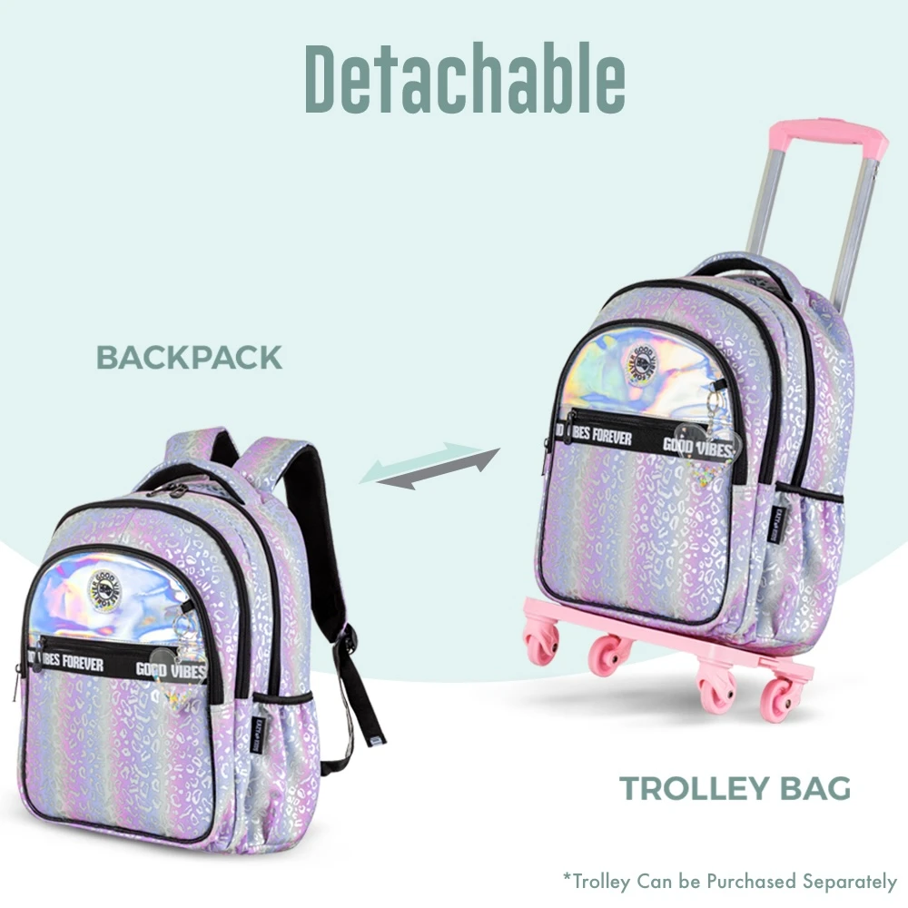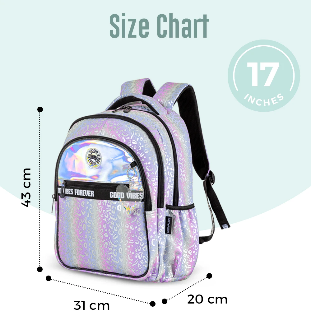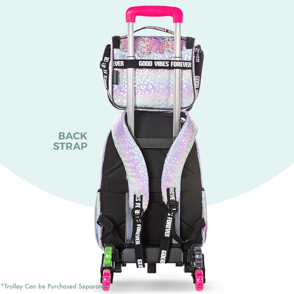 Its metallic silver finish paired with “Good Vibes” text makes it trendy and appealing for style-savvy students. Built to be lightweight yet durable, this set ensures kids are ready for school in both fashion and function.