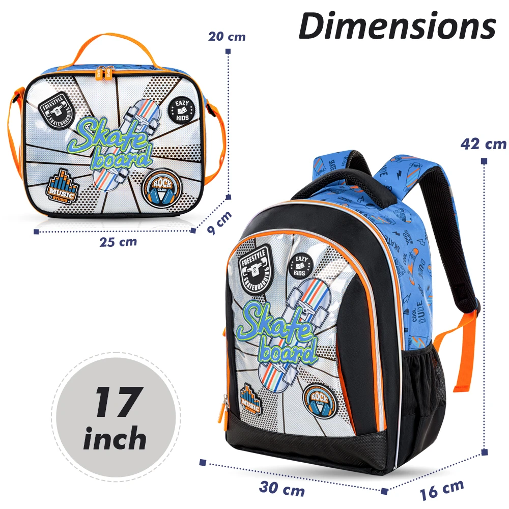 Eazy Kids 17" School Backpack Set of 3 with Lunch Bag & Pencil Case - Skate Board Design