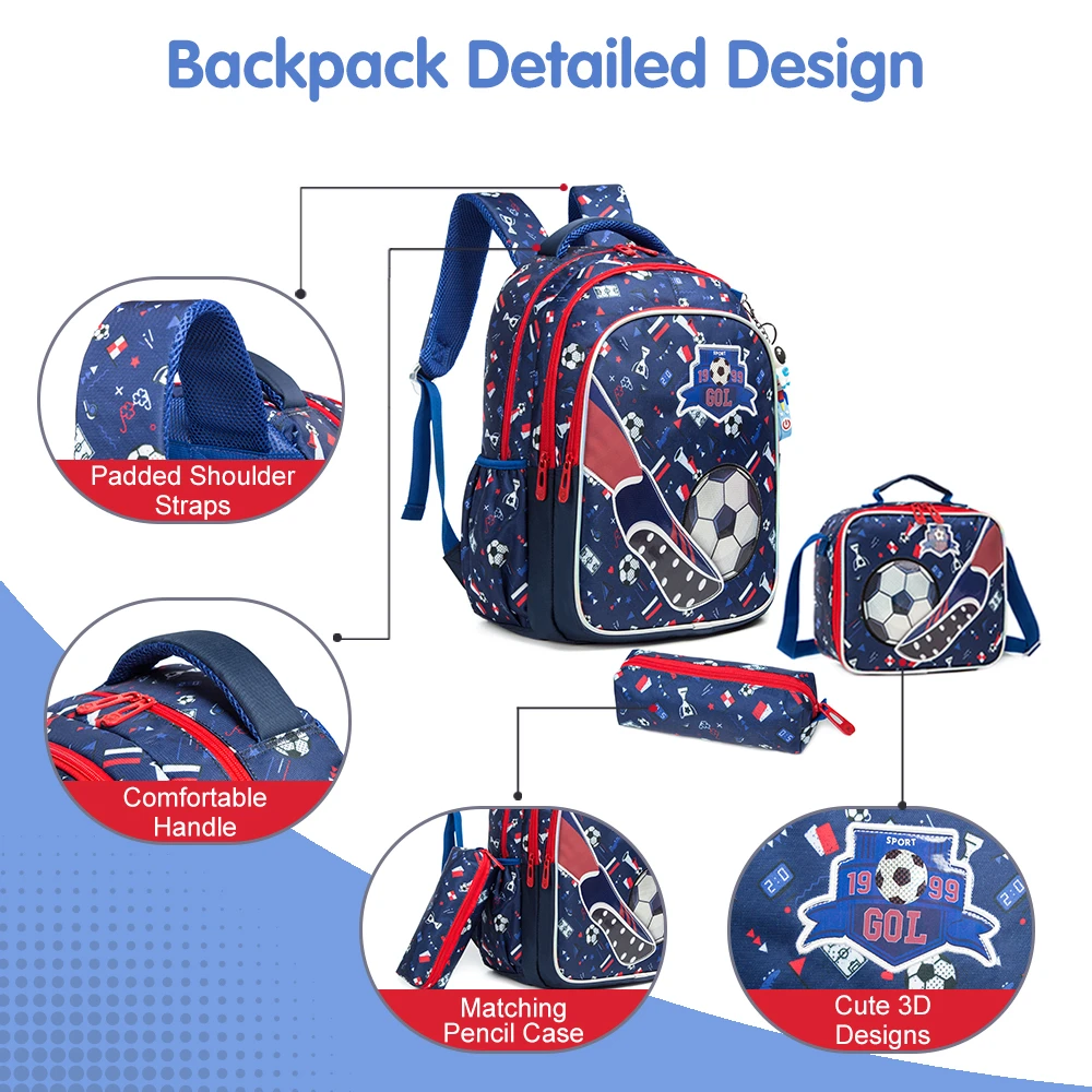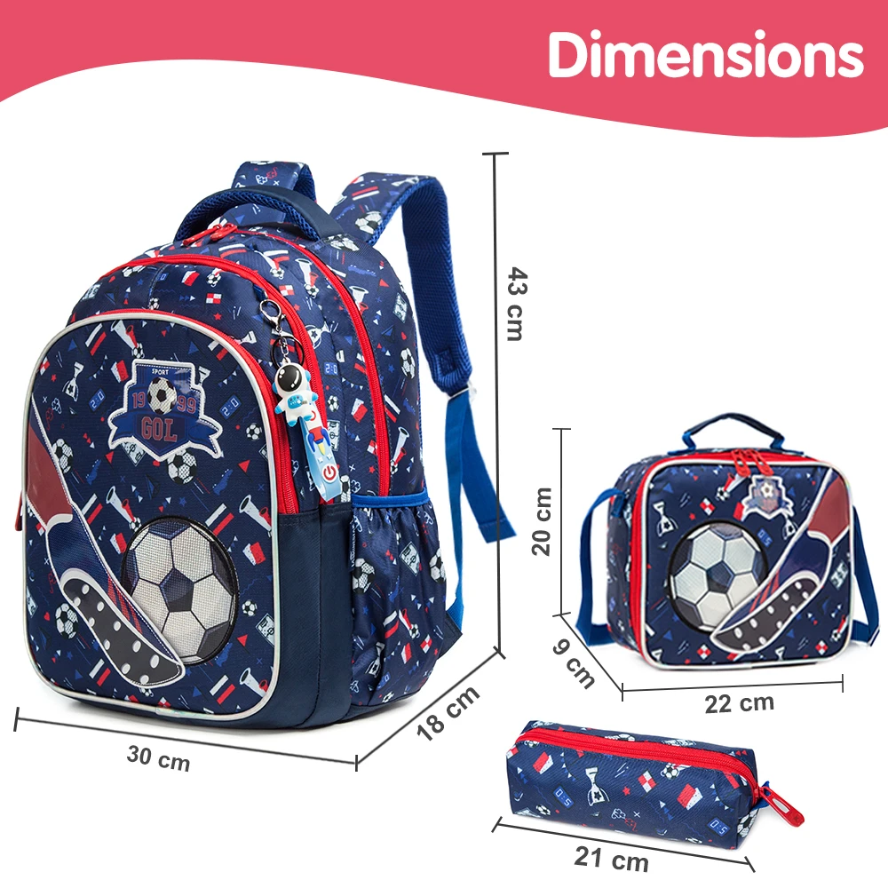 Eazy Kids 17‑Inch Set of 3 School Bag with Lunch Bag and Pencil Case - Football, Blue