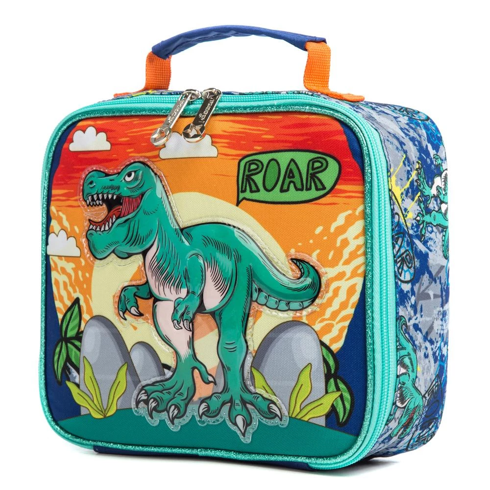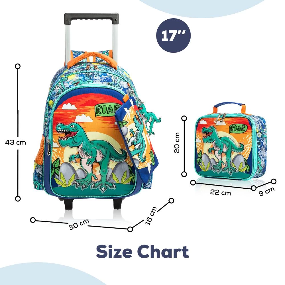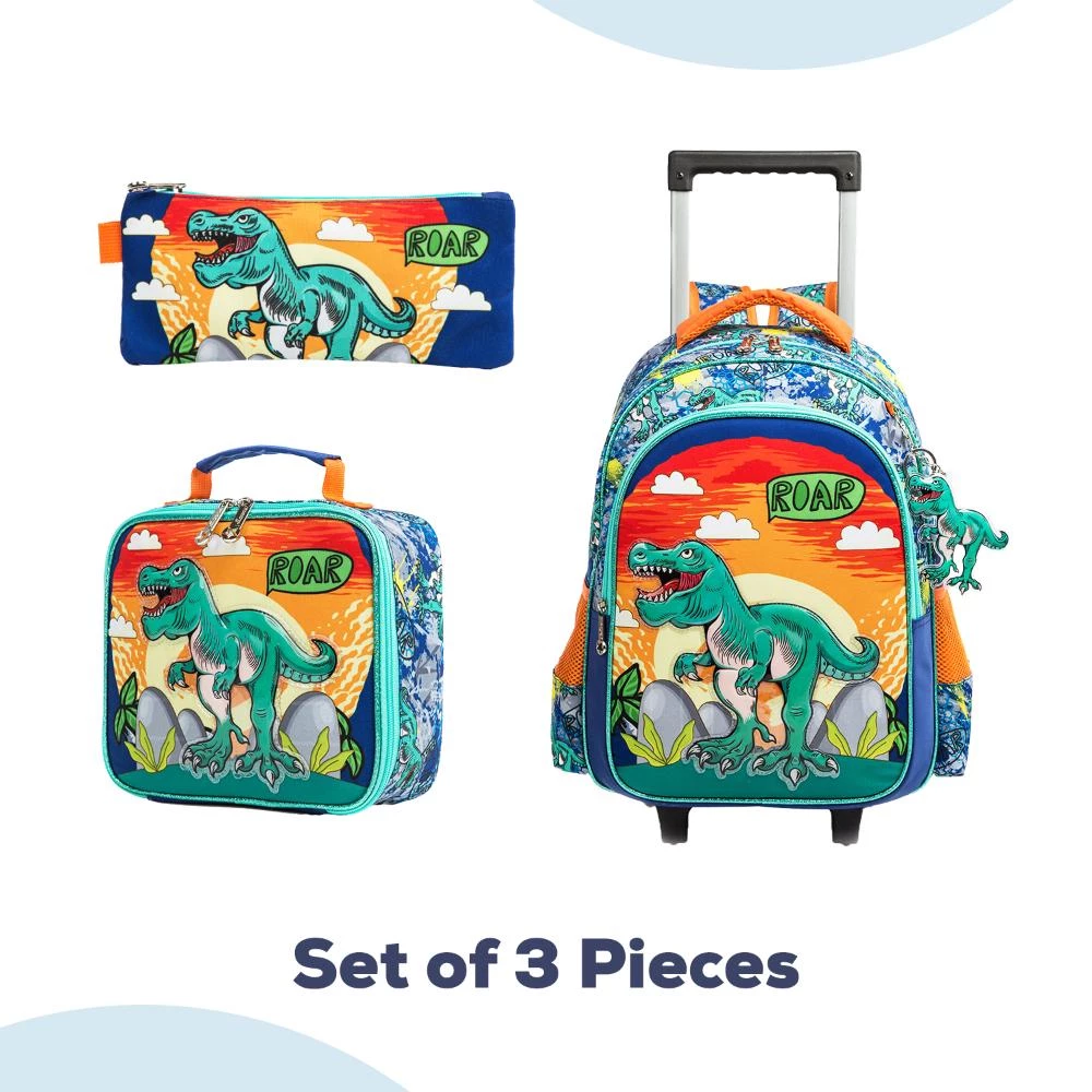 Eazy Kids - 17" Set of 3 Trolley School Bag, Lunch Bag & Pencil Case - Dinosaur - Orange