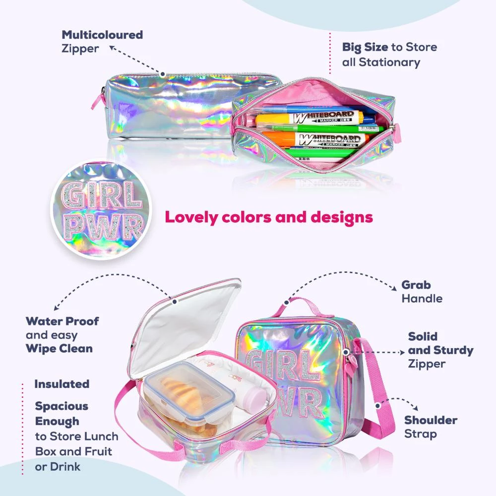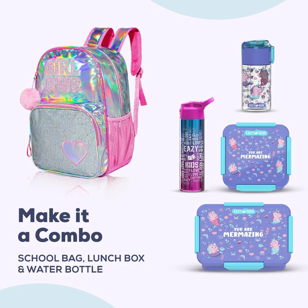 girl power school bag, pink backpack combo, insulated lunch bag, stylish girls bag set, waterproof school set, pencil case combo, back to school set, girls travel bag set, Eazy Kids backpack, 3 piece school bag combo