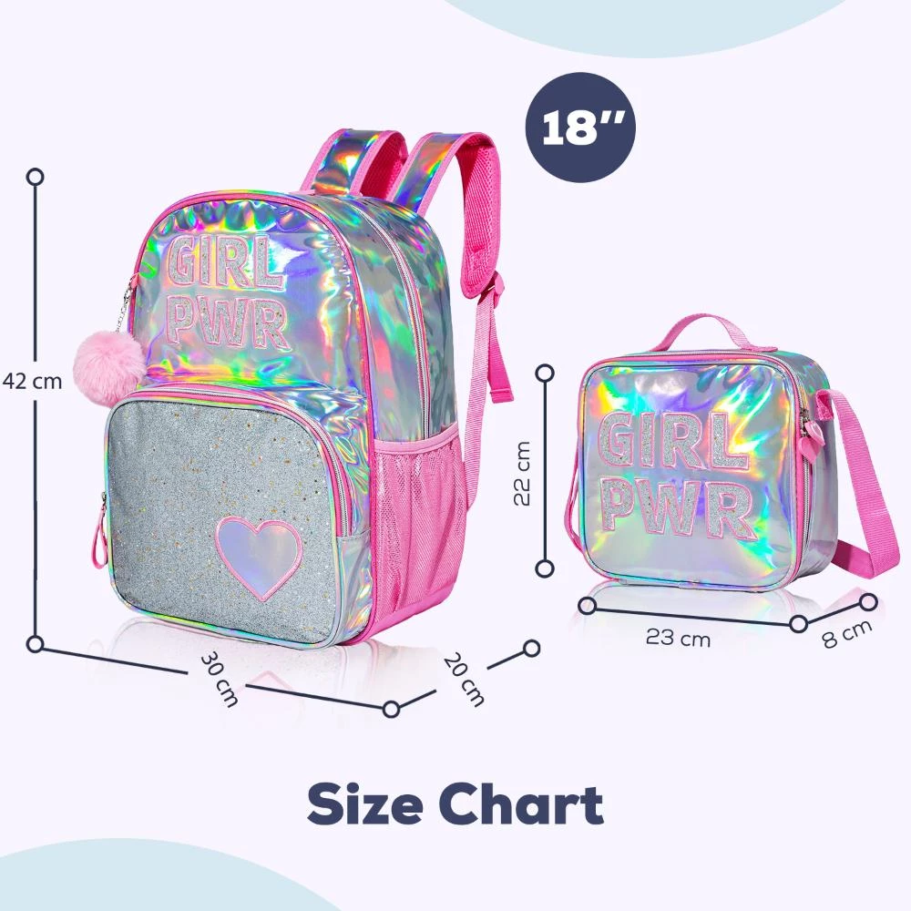 Eazy Kids - 18" School Bag, Lunch Bag & Pencil Case Set of 3 - Girl Power - Pink