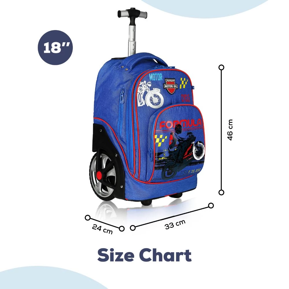 Eazy Kids - 18" Set of 2 Trolley School Bag with Big Wheels & Pencil Case - Formula Racing - Blue