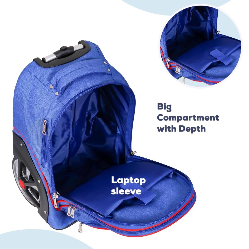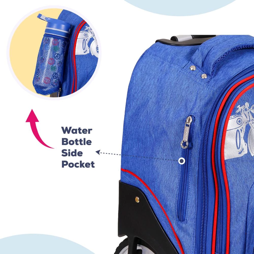 Make the school run fast and fun with the Eazy Kids Formula Racing Trolley School Bag Set of 2. Designed with a dynamic 3D racing car theme, this combo includes a big wheel trolley backpack and a matching pencil caseĀengineered to handle the demands of daily school life. Built for functionality, the school bag features spacious compartments, multiple zippered pockets, and side mesh holders, offering ample space for books, gadgets, and stationery. The robust trolley system, equipped with anti-skid locks and big wheels, glides smoothly even on stairs and supports up to 50kg. With water-resistant material, reflective safety strips for low-light visibility, and ergonomic padded straps, this backpack delivers all-day comfort, safety, and style. The perfect high-performance solution for kids who are always on the move.