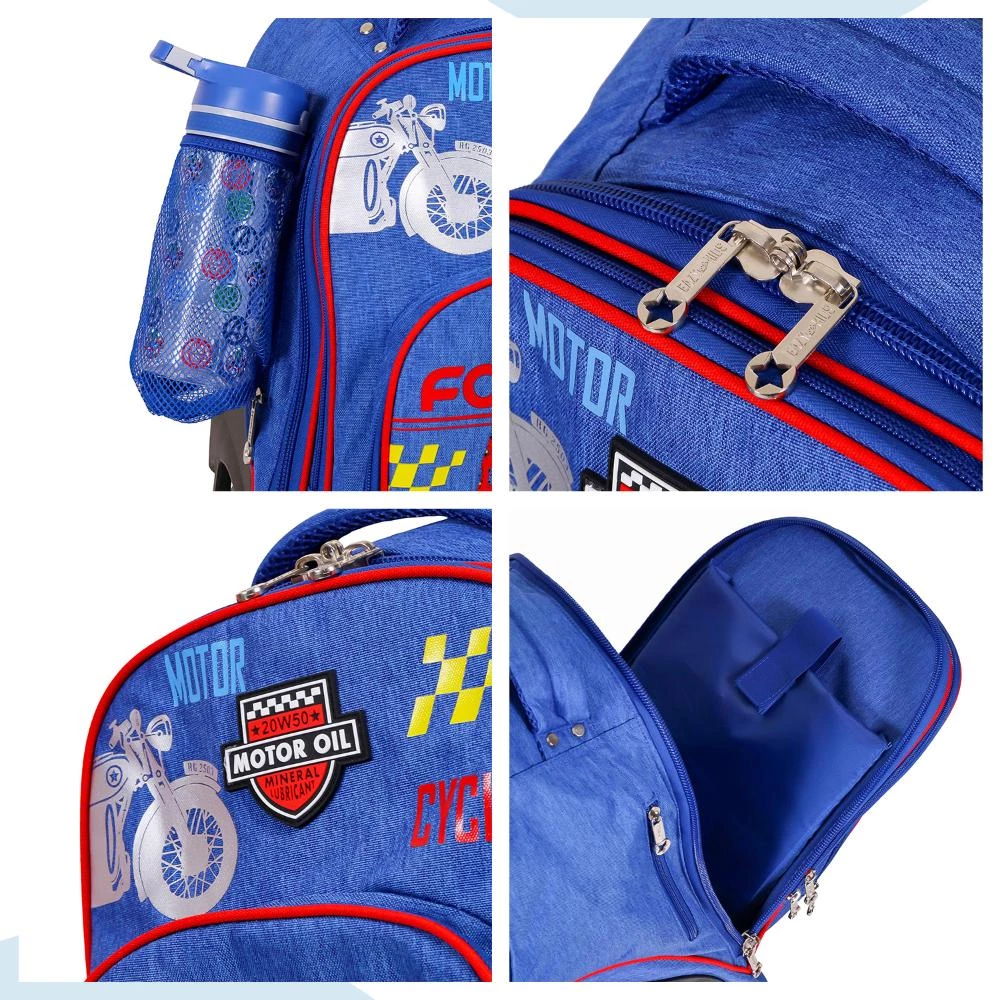 formula racing trolley backpack, Eazy Kids big wheel school bag, boys school bag with wheels, racing car school backpack, 2-piece school bag and pencil case set, waterproof trolley school bag, reflective kids backpack, back to school racing set, blue trolley bag for boys, kids rolling backpack with compartments
