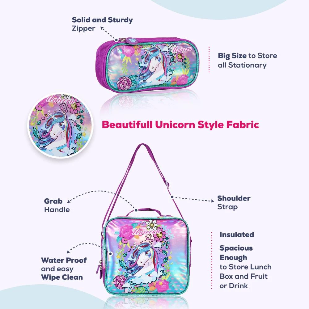 unicorn school bag set, pink kids backpack set, girls rolling school bag, school trolley set, 3D unicorn backpack, waterproof unicorn bag, stair climbing school trolley, Eazy Kids school essentials, kids school luggage, unicorn back to school set