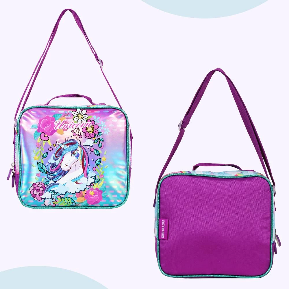 Make school days magical with the Eazy Kids 4-in-1 Unicorn School Set in charming pink. This all-in-one set includes a spacious backpack with trolley, insulated lunch bag, drawstring activity bag, and pencil caseperfect for keeping everything organized with a touch of fantasy. Crafted from durable polyester, the backpack features a smooth trolley system with high-density wheels and a stair-friendly design that supports up to 50kg. Reflective safety strips add visibility in low light, while water-resistant fabric offers all-weather protection. With multi-compartment storage including a laptop sleeve, front organizer pockets, and side mesh holders, kids can carry books, tech, and supplies with ease. The 3D unicorn design, sturdy zippers, and playful matching accessories make this set both practical and magicalideal for school, travel, and activities.