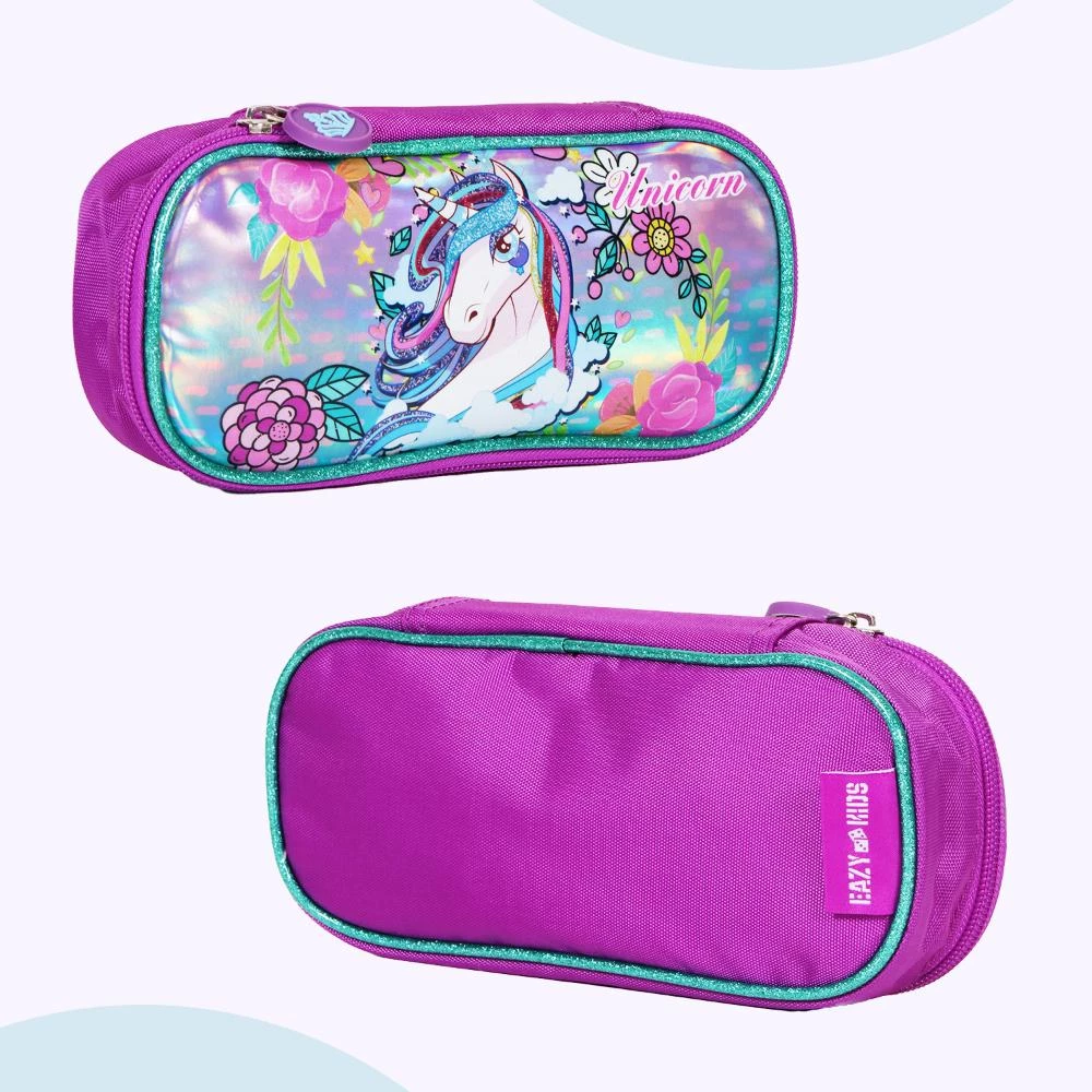 Eazy Kids - 18" Set of 4 School Bag, Lunch Bag, Activity Bag & Pencil Case - Unicorn - Pink
