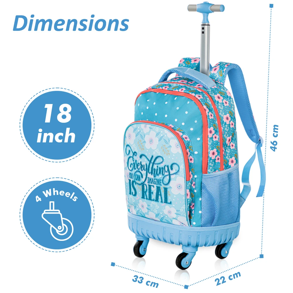 Eazy Kids 18" 4-Wheel Trolley School Set - Flora Edition