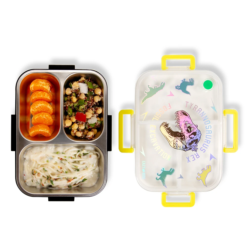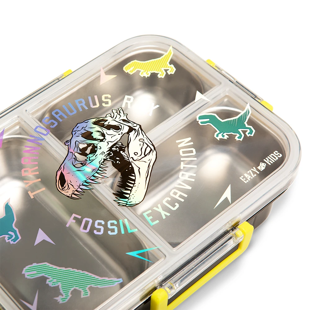 eazy kids dinosaur lunch box,stainless steel bento box,3-compartment lunch box,t-rex theme lunch container,purple kids lunch box,800ml stainless steel lunch box,leak proof kids food container,kids school lunch box,dino themed food box,portion control kids lunch box,kids picnic lunch box,food safe stainless steel lunch box,portable kids lunch container,stylish kids lunch box,compact bento box for school