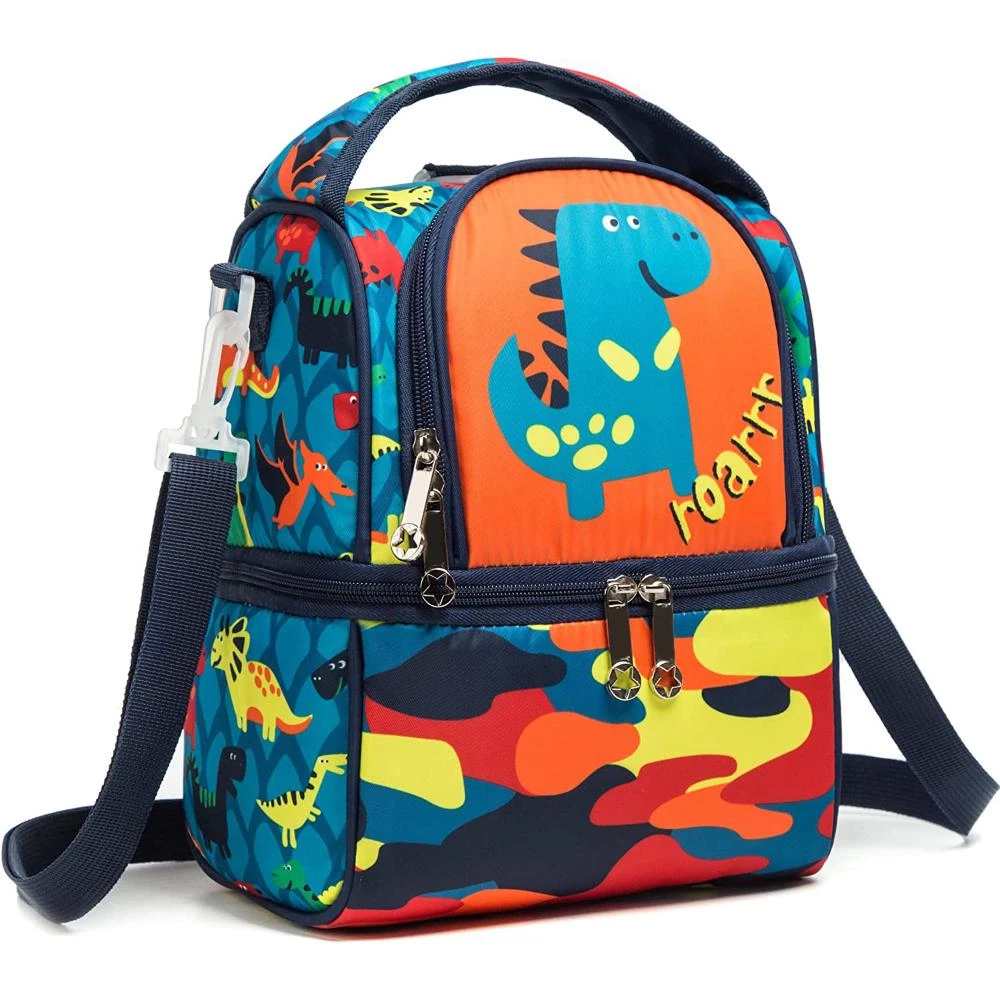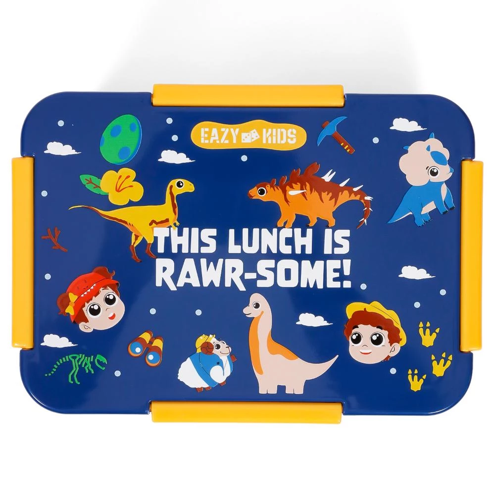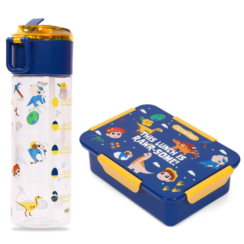 dinosaur lunch bag combo, boys school backpack set, blue insulated lunch kit, kids lunch box and bottle set, Eazy Kids dinosaur theme, eco friendly lunch gear for kids, BPA free lunch combo, dinosaur backpack and lunch bag, leakproof lunch box for boys, durable lunch set for school
