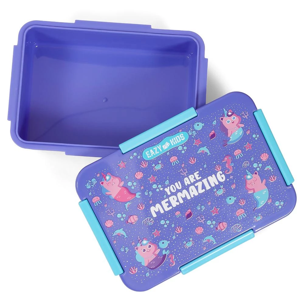 mermaid lunch bag combo, girls school backpack set, purple green lunch bag set, insulated lunch bag for girls, Eazy Kids lunch and bottle combo, mermaid backpack for school, kids eco-friendly lunch set, BPA free lunch box and bottle, stylish lunch kit for girls, leakproof lunch set
