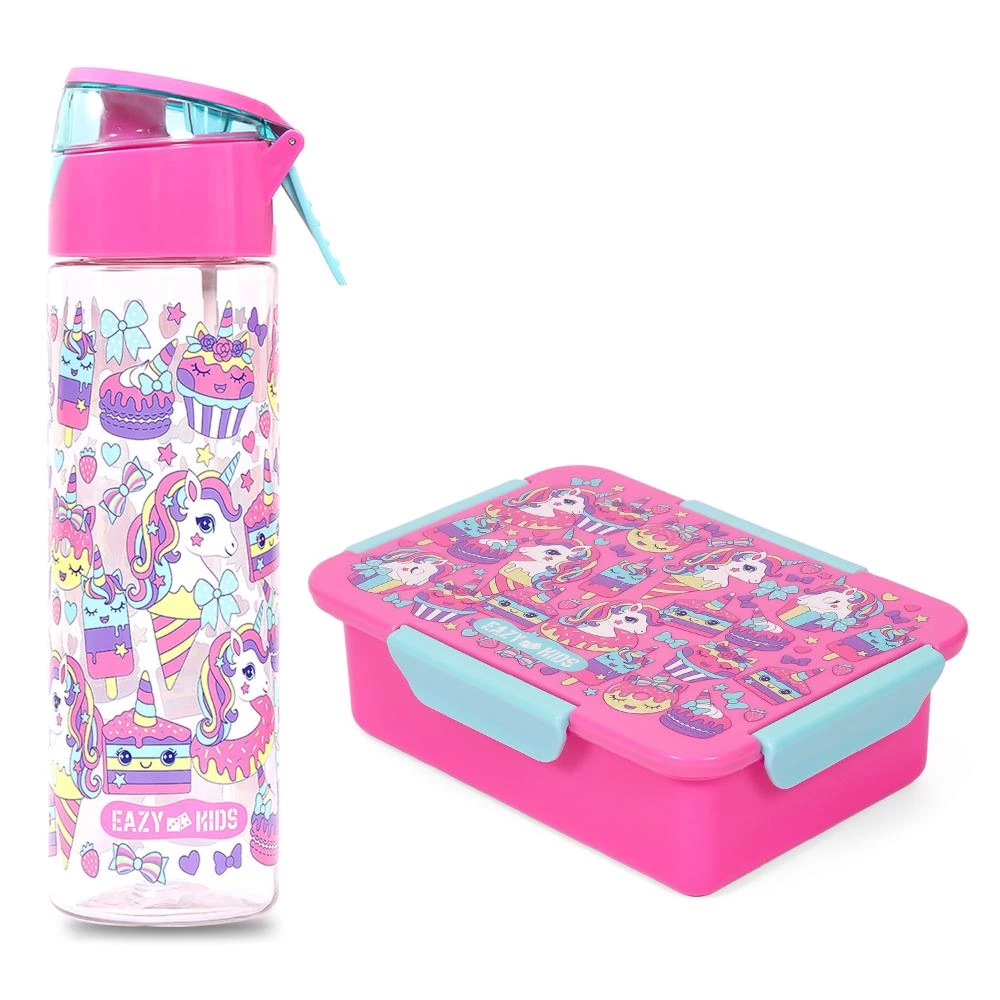 unicorn lunch bag set, pink lunch kit for girls, BPA free school lunch box, Tritan bottle 750ml, leakproof lunch box for kids, Eazy Kids unicorn combo, girls insulated lunch bag, stylish school lunch set, magical lunch kit, eco friendly lunch accessories