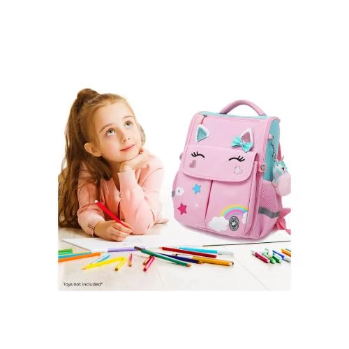 Let your child experience the magic of school days with the Eazy Kids 3D Unicorn School Bag in Pink by SAMBOX, a delightful combination of imagination and functionality. Crafted from durable, dirt-resistant, and waterproof polyester, this backpack features a non-collapsible 3D unicorn design that captures the innocence and curiosity of youth. It offers a generous 17L capacity and includes two main compartments with a laptop sleeve that fits up to a 14-inch device, twin front pockets (one with a lid and one zippered), and two convenient side pockets for water bottles or tissues. The wide, cushioned shoulder straps and padded back panel ensure all-day comfort for growing kids, while reinforced grab handles add extra durability. Designed with child safety in mind, it features reflective strips that shine in low-light conditions to keep your child visible. The strong zippers and thoughtful internal organization make this school bag perfect for books, stationery, and lunch boxes. With its vibrant unicorn theme and premium build, its the ideal back-to-school or birthday gift for little ones who believe in magic.