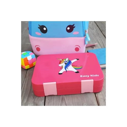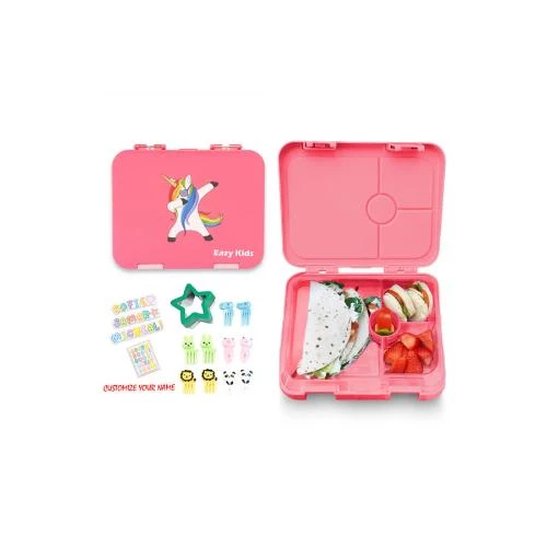 kids bento lunch box, unicorn lunch box, 4 compartment lunch box, leakproof kids lunch box, eazy kids lunch box, tritan lunch box, microwave safe lunch box, school lunch box for girls, cute lunch box with cutters, fun unicorn meal container