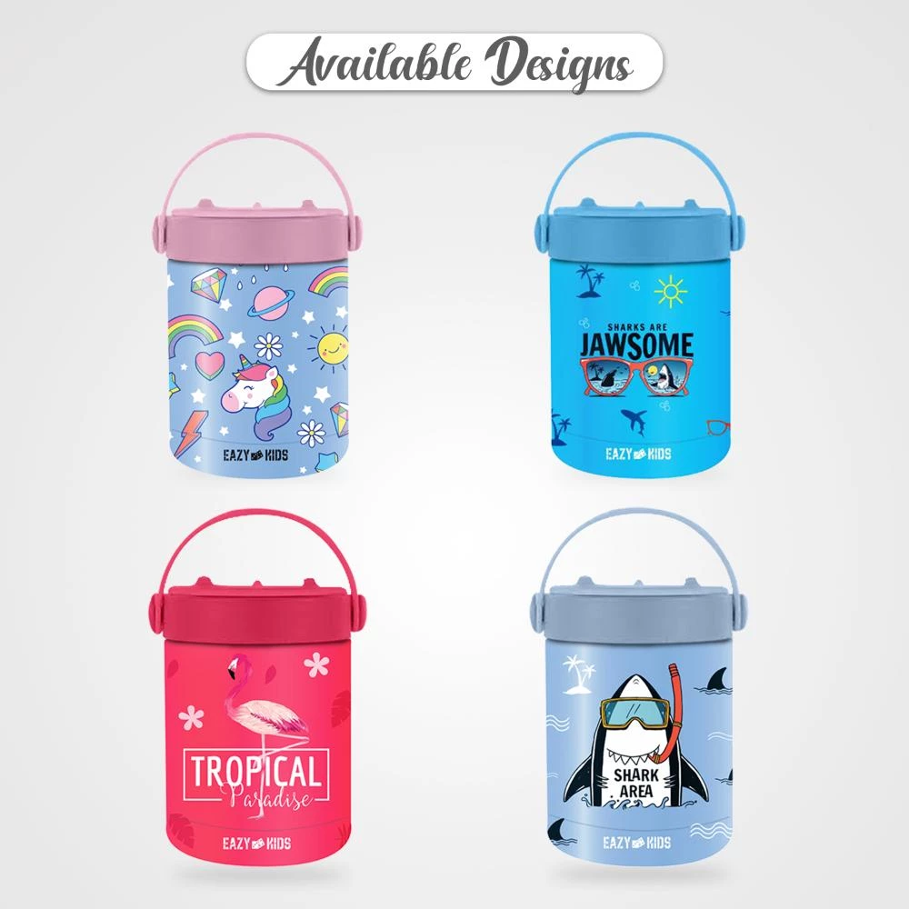 The Eazy Kids Unicorn Blue Lunch Combo is the perfect all-in-one mealtime solution. This thoughtfully designed set includes a Tritan™ bento lunch box with four compartments, an insulated stainless steel food jar (350ml), and a coordinating lunch bag. The bento box features a slant mouth opening for easy access, a leakproof silicone-lined lid, and comes with a sandwich cutter and fun fruit picks for a creative lunch experience. The food jar keeps meals warm for up to 8 hours and cold for 10, and includes a folding spoon neatly tucked into the handle lid. Made of BPA-free, food-grade stainless steel, it’s freezer and dishwasher safe (lid excluded). The included lunch bag is roomy, durable, and washable, with smart compartments and a wide opening for convenient packing. Stylish, practical, and fun—this combo delivers on every level.