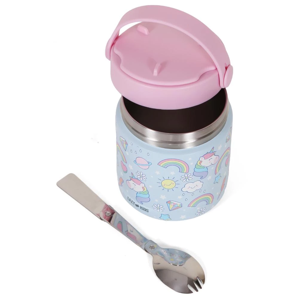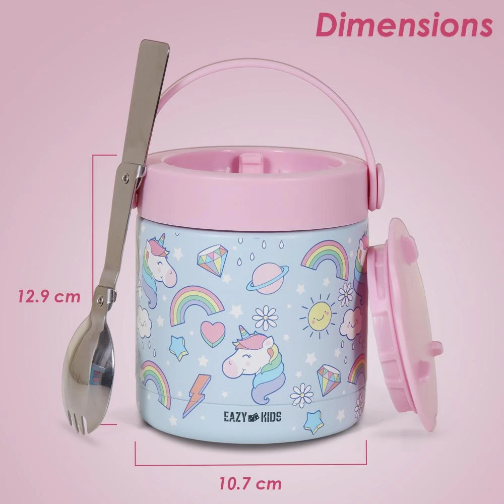 eazy kids unicorn bento box, 4 compartment lunch box, insulated food jar for school, leakproof lunch kit, matching lunch and water bottle set, stainless steel food container, kids school meal set, tritan water bottle for kids, unicorn print lunch box, eco-friendly kids lunch combo