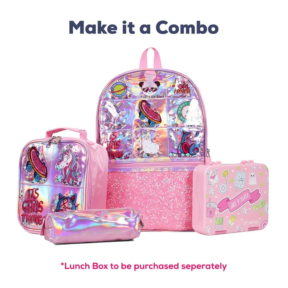Eazy Kids 4-in-1 Back to School Combo - It’s Girl Thing Pink - School Bag, Lunch Bag, Pencil Case & Leakproof Bento Lunch Box