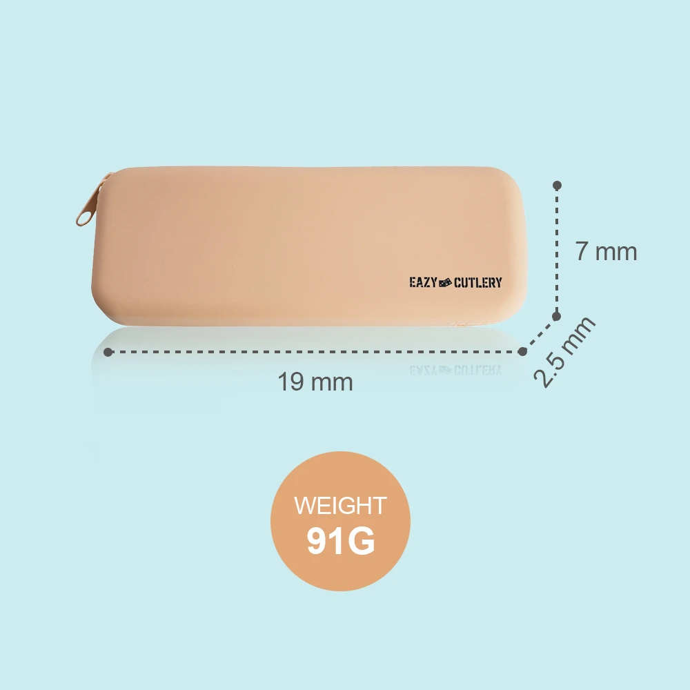 Accompanied by a silicone pouch, the set stays neatly stored and ready for use anytime. The pouch is water-resistant, soft to the touch, and easy to carry in lunch bags, backpacks, or handbags. Its ivory tone adds a touch of sophistication, making this set suitable for both everyday meals and special occasions.