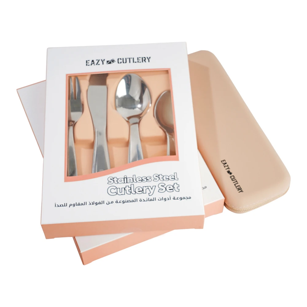 cutlery set, ivory cutlery, stainless steel utensils, spoon fork knife set, kids dining set, silicone pouch, portable cutlery, reusable utensil set, eazy kids cutlery, elegant dining set, lunchbox cutlery, travel cutlery, compact utensil set, eco friendly cutlery, washable pouch, durable stainless steel, stylish kids cutlery, everyday utensil set, soft touch pouch, organized cutlery