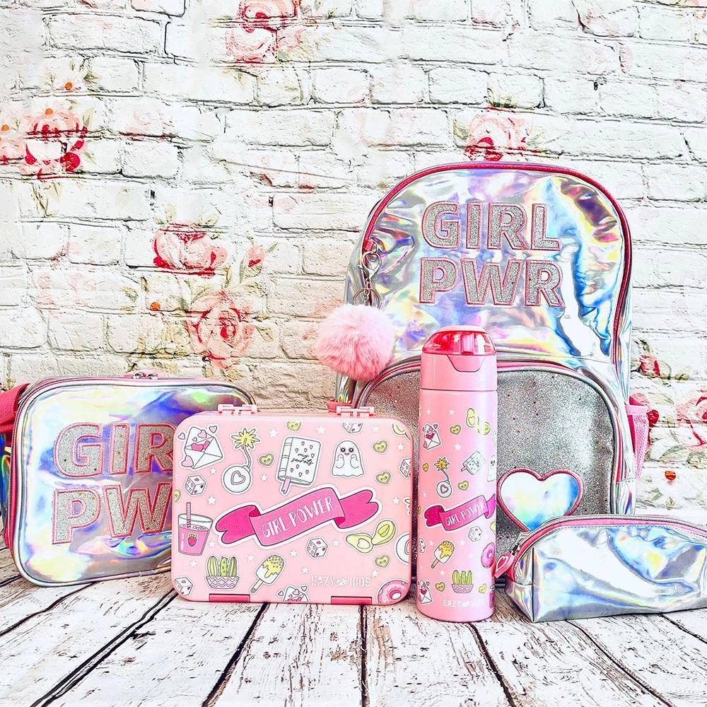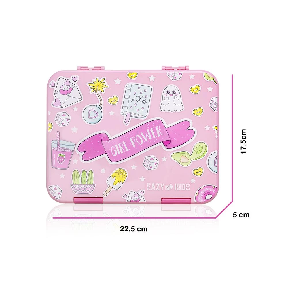 eazy kids bento lunch box, girl power lunch box, convertible bento box for kids, bpa free kids lunch box, leakproof kids lunch box, fun school lunch box, lunch box with sandwich cutter, kids lunch box with fruit picks, tritan bento box, kids back to school lunch box