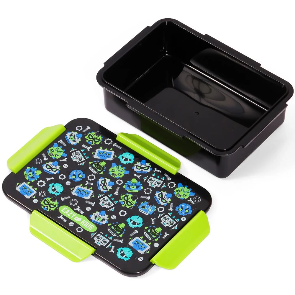 Unleash prehistoric fun with the Eazy Kids 5-in-1 Dinosaur Back to School Combo in bold black and green. Featuring a vibrant dinosaur print, this combo includes a spacious school bag, insulated lunch bag, pencil case, 850ml leakproof lunch box, and a 650ml BPA-free Tritan water bottle—all color-coordinated for a fun, stylish look. Crafted from durable, water-resistant polyester, the school bag boasts wide, breathable padded straps and multiple storage compartments for optimal organization. The zippers are sturdy with easy-grip pullers, ensuring smooth open-and-close functionality even with daily use. The lunch bag offers thermal insulation and easy-to-clean fabric, while the pencil case provides convenient storage for school essentials. The eco-friendly lunch box is lined with a silicone seal and secured by four clasps to ensure a tight, leakproof fit—perfect for thick yoghurts, dips, and other wet snacks (not liquids). The Tritan water bottle is lightweight, safe for warm water, and dishwasher/microwave/freezer safe when used correctly. Designed to keep kids energized, hydrated, and organized, this back-to-school combo is a perfect blend of functionality, fun, and bold dinosaur style.