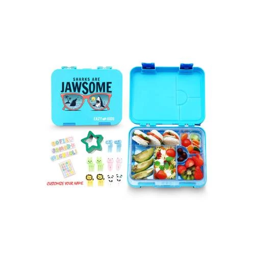 eazy kids bento box, convertible lunch box, jawsome blue lunch box, bpa free lunch box, bps free lunch box, tritan lunch box, kids lunch box with compartments, leakproof bento box, kids sandwich cutters, animal fruit picks,dishwasher safe lunch box, microwave safe lunch box