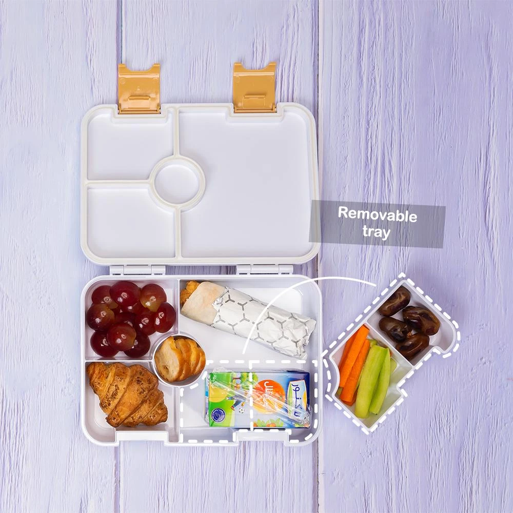 Add a fresh, healthy vibe to lunchtime with the Eazy Kids 6 & 4 Convertible Bento Lunch Box - Avocado! This compact, clever lunch box is designed to make packing nutritious meals easy. Its convertible design lets you switch from six to four compartments with the removable tray - perfect for dips, fruits, veggies, and snacks. Made from Tritan, a premium BPA and BPS-free material, its strong, safe, and built to last. Kids will love the slant mouth opening for quick access, while parents will appreciate the leakproof silicon lining that keeps sauces and yogurts mess-free. The removable silicon tray makes cleaning effortless, and the inner tray is microwave and dishwasher safe. Plus, each box includes a cute sandwich cutter, animal-shaped fruit picks, and fun alphabet stickers for playful lunch presentations. Fits easily into all standard lunch bags - perfect for school or day trips!