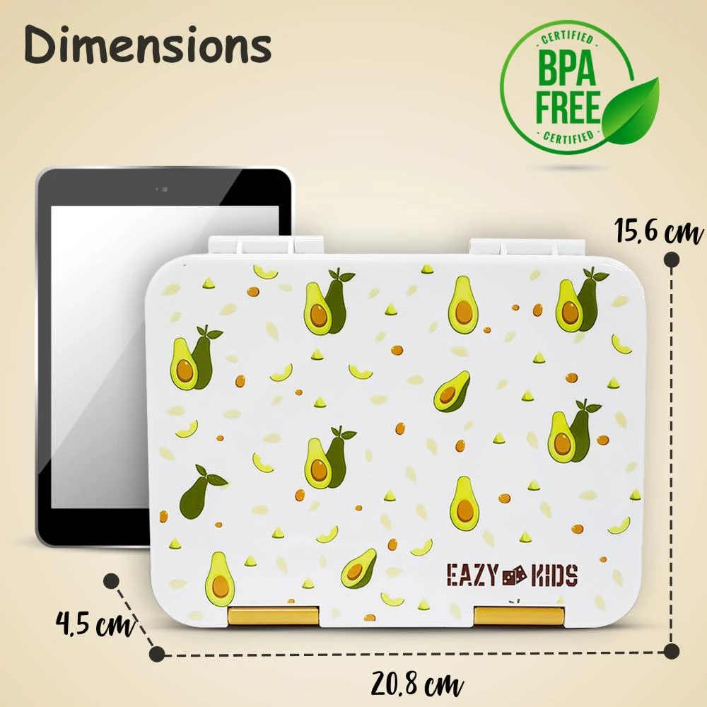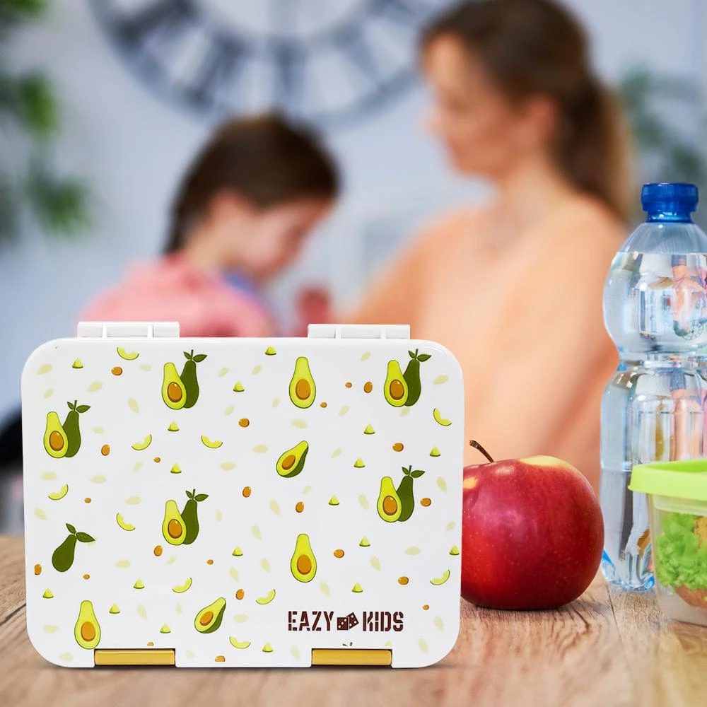 eazy kids bento lunch box, avocado lunch box for kids, convertible kids bento box, tritan lunch box, leakproof lunch box, bpa free bento lunch box, lunch box with sandwich cutter, kids lunch box with fruit picks, compact kids lunch box, back to school lunch essentials