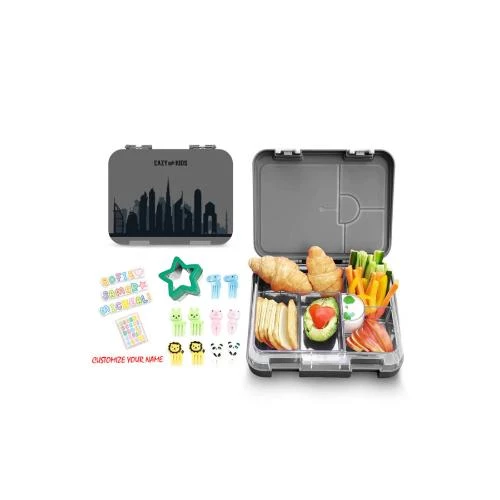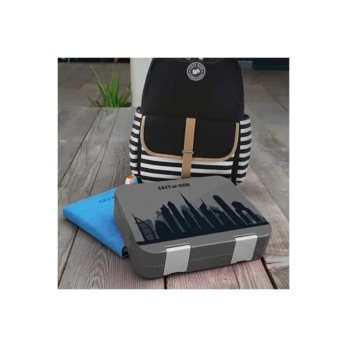 bento lunch box, convertible bento box, kids lunch box, leakproof lunch box, tritan lunch box, BPA free lunch box, skyline grey bento box, sandwich cutter set, fruit picks lunch box, Eazy Kids lunch box
