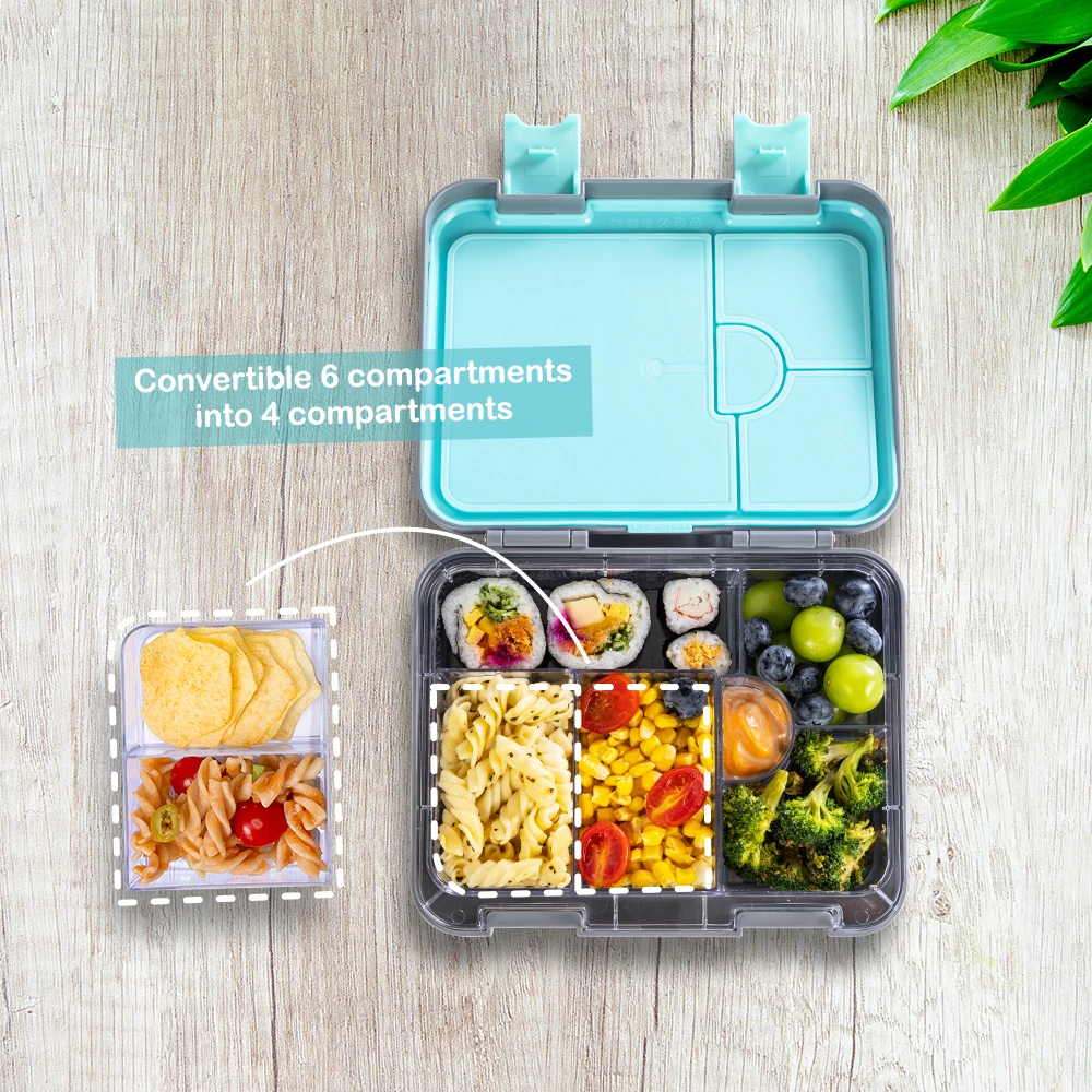 Make mealtime fun and organized with the Eazy Kids 6 & 4 Convertible Bento Lunch Box – T-Rex Grey. Designed with a cool dinosaur theme, this bento box offers flexibility with 6 and 4 compartment options, allowing you to pack a variety of foods without mixing flavors. It comes complete with a matching water bottle, a high-quality steel spoon and fork set, and alphabet stickers for personalization, making it both functional and exciting for kids.