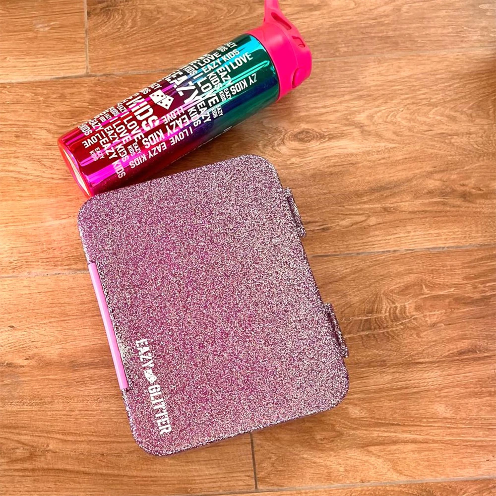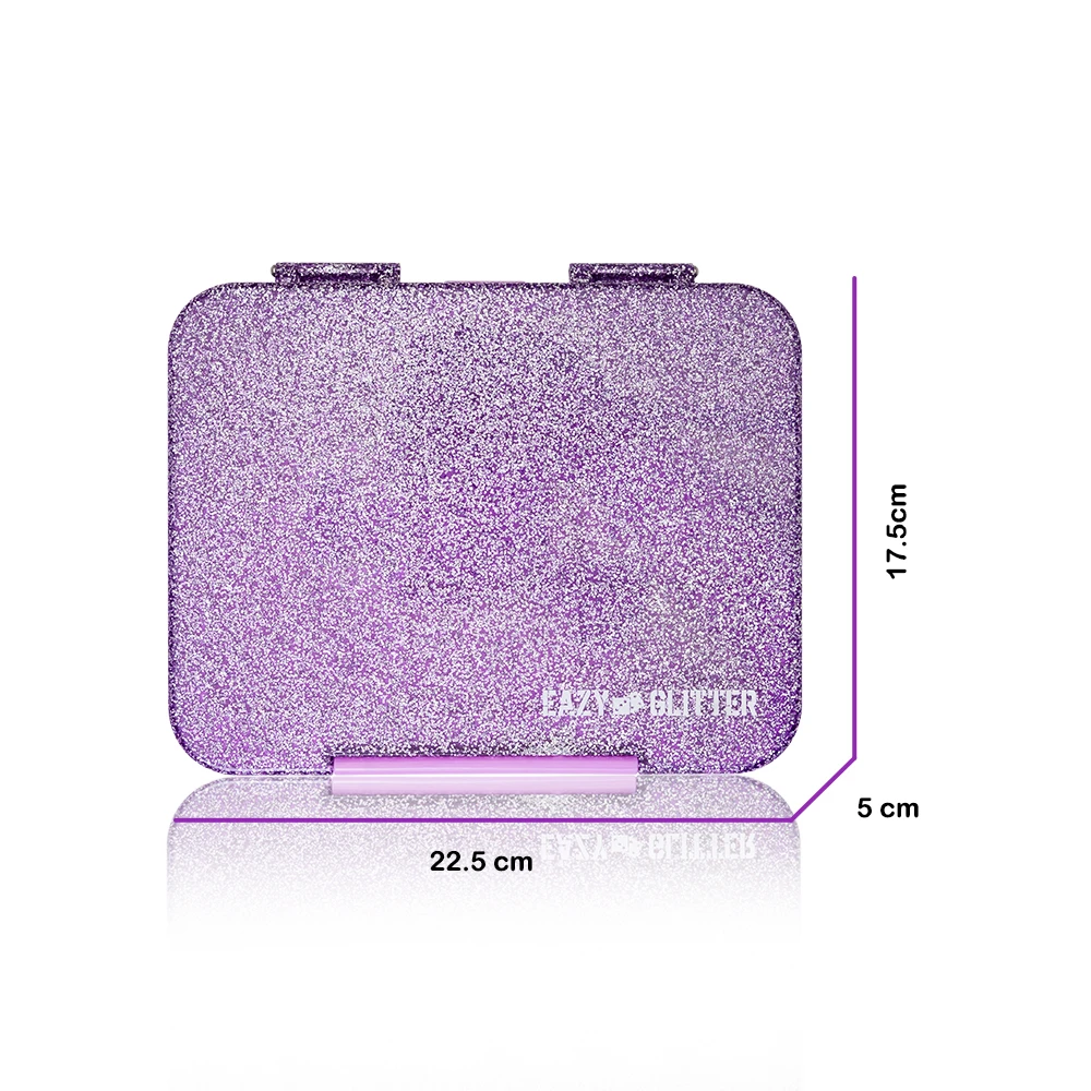 Bring sparkle to mealtime with the glitter-purple Eazy Kids convertible bento lunch box. Its modular design allows you to choose between 6 or 4 compartments—ideal for customizing meals and snacks with better organization. The leakproof silicone seal ensures all contents stay secure, perfect for yogurts or sauces. Crafted from BPA- and phthalate-free polypropylene, it offers safety and durability. The glitter-purple finish is eye-catching and playful. With a slanted lid for easy opening and a removable inner tray for convenient cleaning, it’s built for reliability. Microwave-safe (inner tray) and top-rack dishwasher safe, this lunch box combines playful aesthetics with practical features ideal for busy routines.
