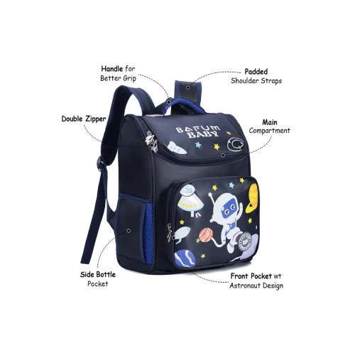 eazy kids astronaut bag, blue school backpack, astronaut print school bag, water resistant kids bag, kids school bag with laptop sleeve, reflective strip backpack, boys school bag blue, space themed school bag, durable backpack for school, kids backpack with side pockets